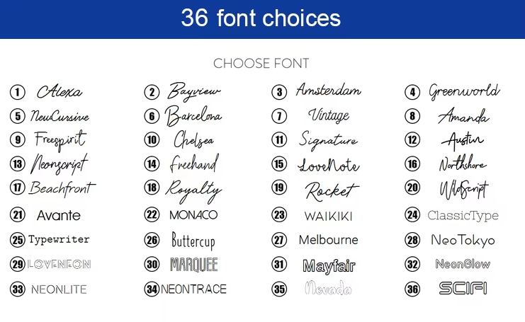 - Personalised Multiple Colors & Fonts: Choose from 12 vibrant colors and 36 typefaces to match your personal style or brand.